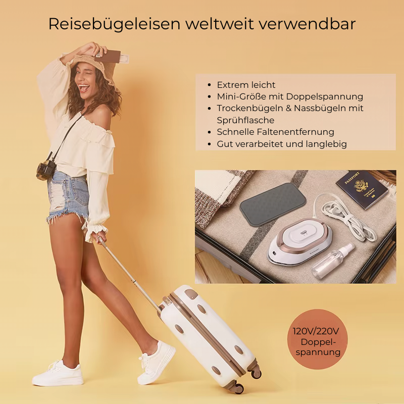 Doppelspannung : Dank der praktischen Doppelspannungsfunktion von 120 V und 220 V kannst du das Bügeleisen in nahezu jedem Land der Welt verwenden – ganz ohne Adapter! So bist du immer bestens gerüstet, egal wo deine Reise hinführt.